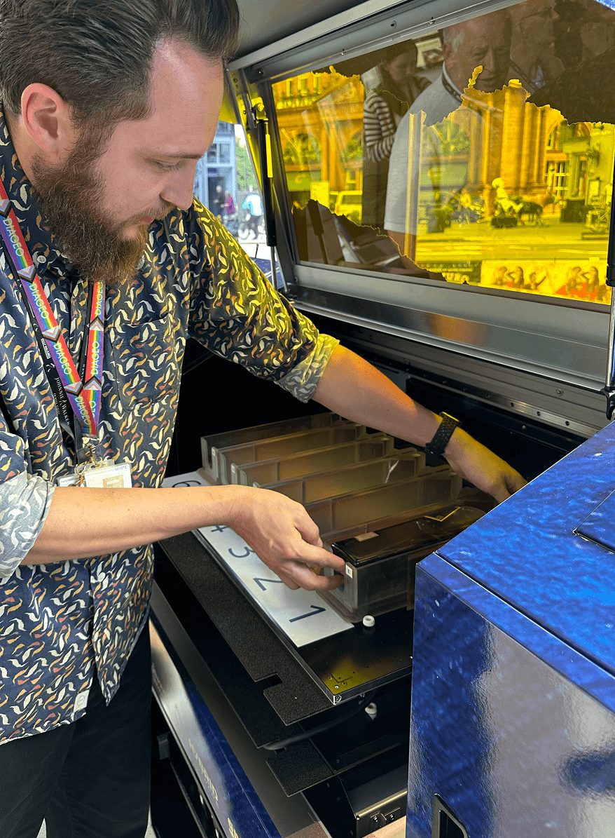 As the lead designer, my focus was transforming the transaction into a meaningful co-creative act. Working directly with renowned Scottish artist Scott Naismith, we trained an AI model on his entire art catalogue to capture his vibrant style authentically. Hosted at the Edinburgh flagship store, we invited enthusiasts to answer personality-based prompts via iPad touched based experience. The AI seamlessly blended their profile with Scott’s colourful abstractions, generating bespoke, one-of-a-kind designs. Visitors explored these options on a custom 3D model before their chosen artwork was printed instantly in-store.